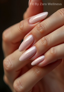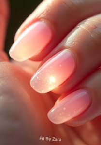 Classic Nude with a Twist Effortlessly Chic Picture this: a soft nude base with a hint of shimmer cascading across