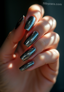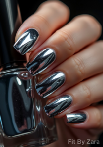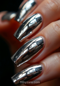 Shimmering Silver Elegance Classic Chrome Picture this: your nails glimmering like silver champagne bubbles, perfectly reflecting light at every angle.