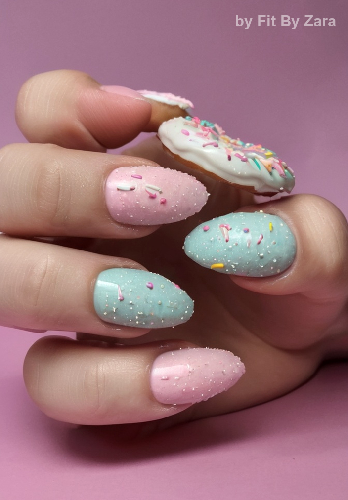 Imagine delicate, frosted pastel nails that shimmer like freshly fallen snow. Soft hues of lavender, mint, and baby blue come together in a dreamy ombré effect, creating a serene vibe that’s perfect for the winter season. This look feels ethereal, giving your hands an elegant touch that feels polished yet approachable.